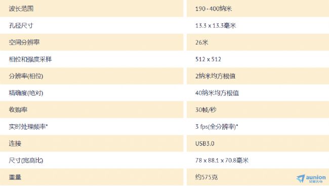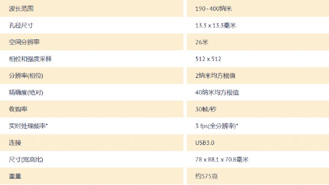 ★SID4 UV HR紫外波前傳感器參數(shù)
