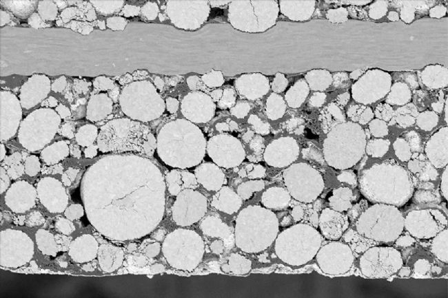 圖1.將多晶三元材料通過離子研磨儀切割后,可以觀察到顆粒內(nèi)部的真實(shí)情況。(來源:Technoorg Linda)