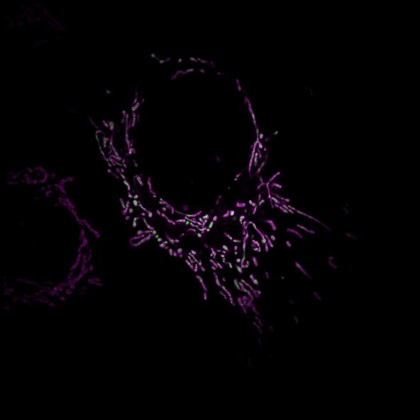 由于細胞核中的核DNA眾多,市售的線粒體DNA探針在染線粒體DNA的同時同樣會染核DNA,導(dǎo)致整個成像雜亂,甚至來自核DNA的信號亮度過強掩蓋住了來自線粒體DNA的信號,干擾了對線粒體 DNA 的精準觀察和分析。
