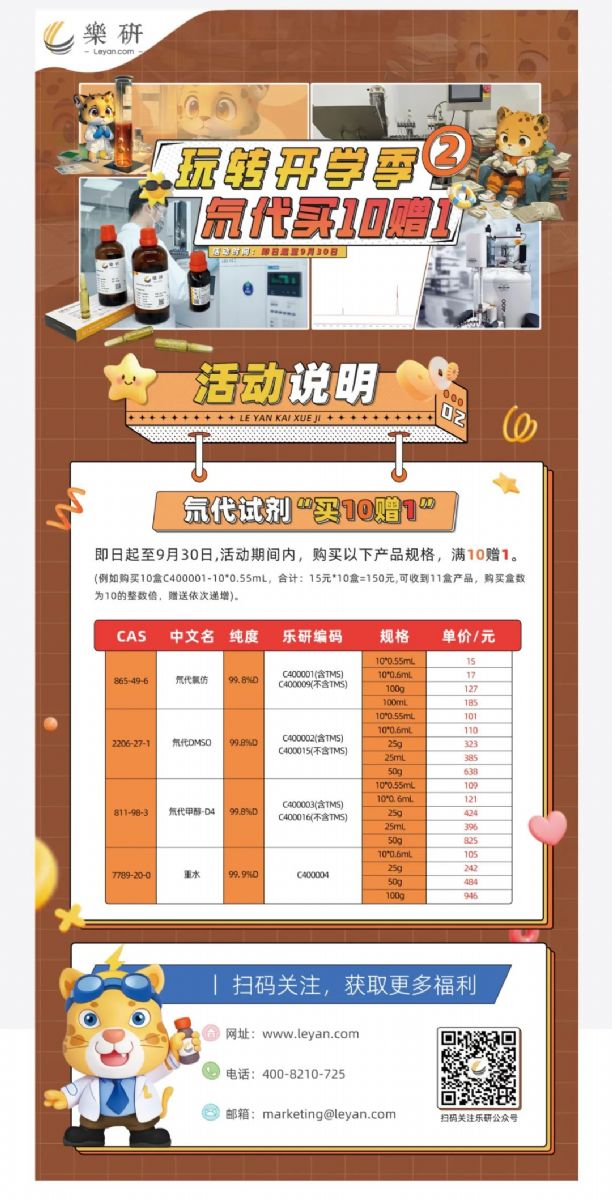 樂研試劑舉辦“玩轉(zhuǎn)開學(xué)季”活動:氘代10贈1,快來看看吧!