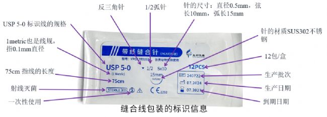 (3)針的尺寸,針的尺寸,一指針的直徑、弦長(zhǎng)和弧長(zhǎng),表示方式為:5×10—15mm,表示直徑(D)0.5mm、弦長(zhǎng)(L)10mm、弧長(zhǎng)15mm。