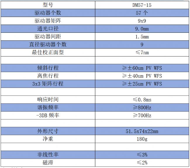 法國ALPAO公司新推出高性價(jià)比產(chǎn)品DM57-15,產(chǎn)品參數(shù)如下表