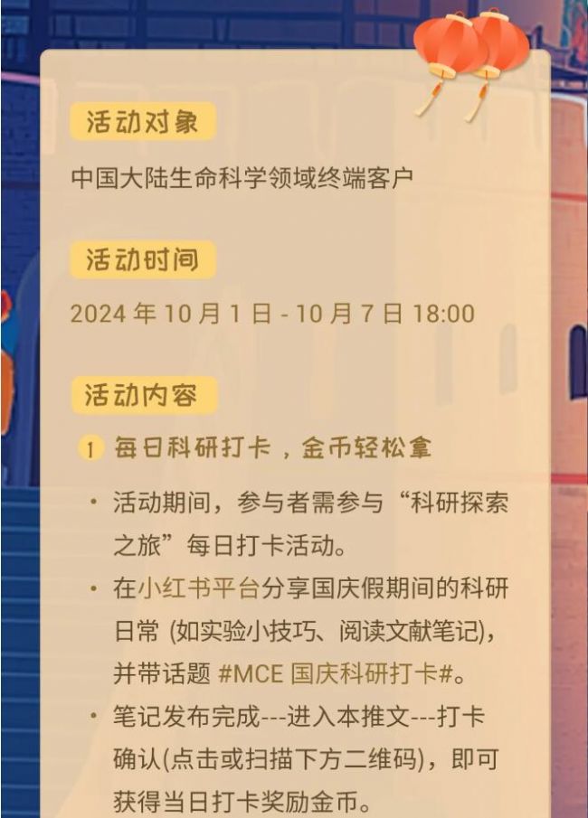 MCE國慶假期發(fā)貨安排&科研打卡挑戰(zhàn)贏好禮活動