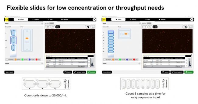 Cellometer Ascend提供兩種規(guī)格計數(shù)板可選,上樣體積更小,采樣面積更大,可滿足2x104–4x107cells/mL濃度范圍內(nèi)的準(zhǔn)確計數(shù),真正意義上實(shí)現(xiàn)低濃度樣本的檢測。此外,用戶友好的 Matrix™軟件集成了自動化和智能化的圖像分析工作流程,可在30秒鐘內(nèi)提供可靠結(jié)果。