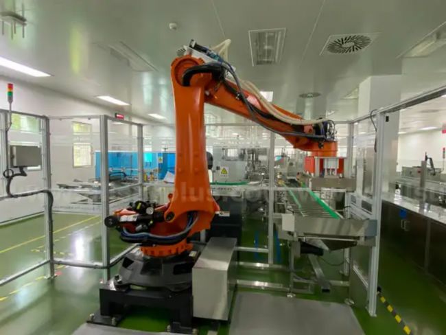 包含上盒機械手、貼標機、貼簽機、激光打印機、電子監(jiān)管碼系統(tǒng) 、裝箱機、碼垛機器人、自動封箱機等設備;