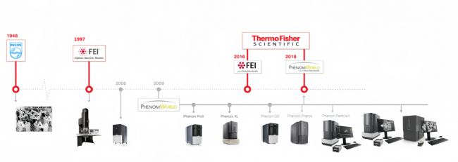 2016 年,飛納電鏡發(fā)布第 5 代產(chǎn)品,分辨率突破 10nm。同年 FEI 被賽默飛世爾科技以 42 億美元收購,2018 年,PhenomWorld 公司被賽默飛收購,從此電鏡產(chǎn)品線更名為 Thermo Scientific 品牌,但技術(shù)上仍繼承了 FEI 的創(chuàng)新成果。