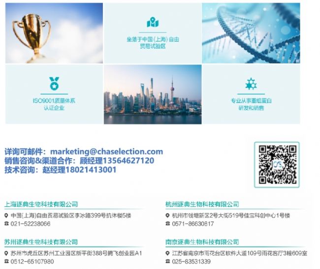 上海逐典生物科技有限公司,坐落于中國(上海)自由貿(mào)易試驗區(qū),獲得ISO9001質(zhì)量體系認證,是一家從事重組蛋白研發(fā)和銷售的高新科技企業(yè)。