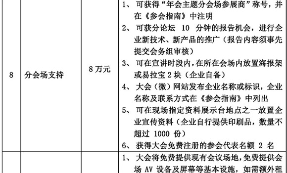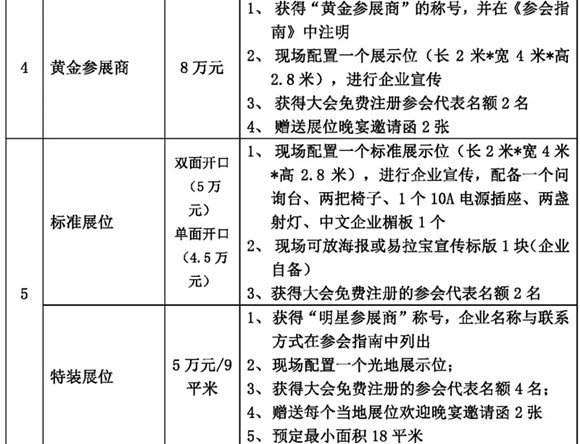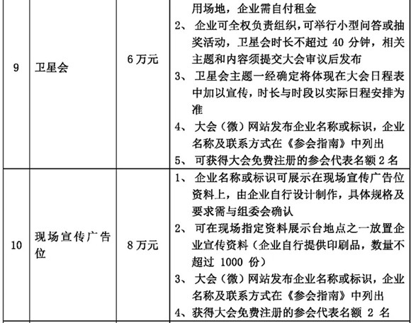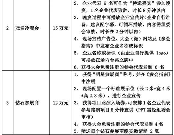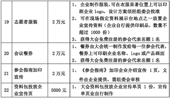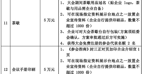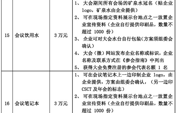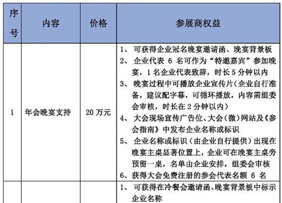 本屆年會(huì)的招商活動(dòng)即日開始,我們熱忱邀請(qǐng)貴司參加此次大會(huì),現(xiàn)將各贊助項(xiàng)目招商情況公布如下: