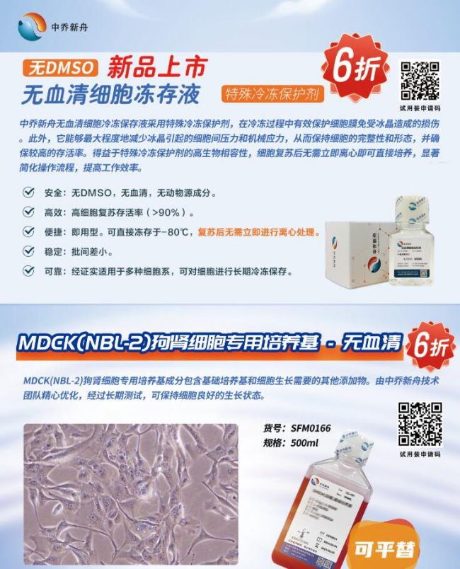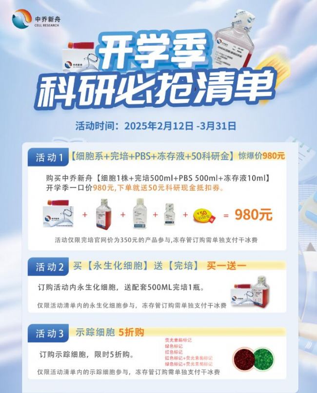 中喬新舟開學(xué)優(yōu)惠:細(xì)胞實(shí)驗(yàn)套裝980元,培養(yǎng)基折扣等