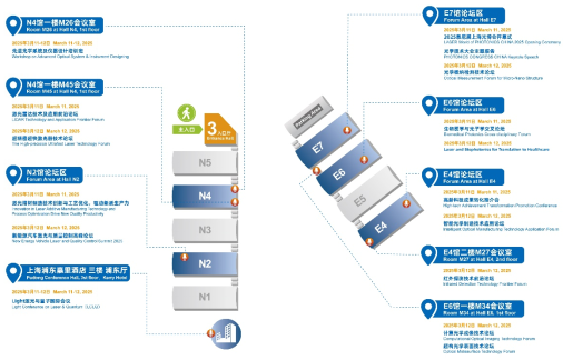 乘坐地鐵7號(hào)線,至終點(diǎn)站花木路站,出地鐵站,前往2號(hào)入口大廳(北大廳),參觀慕尼黑上海光博會(huì);