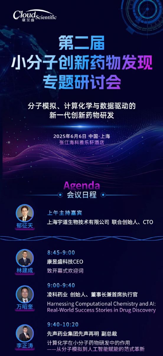 本次研討會希望為從事小分子藥物研究的同行們提供一個深入交流的平臺,幫助大家更好地理解和應(yīng)用計算模擬技術(shù)。如果您對小分子藥物研發(fā)感興趣,歡迎報名參會,期待在6月6日在上海與您相見!