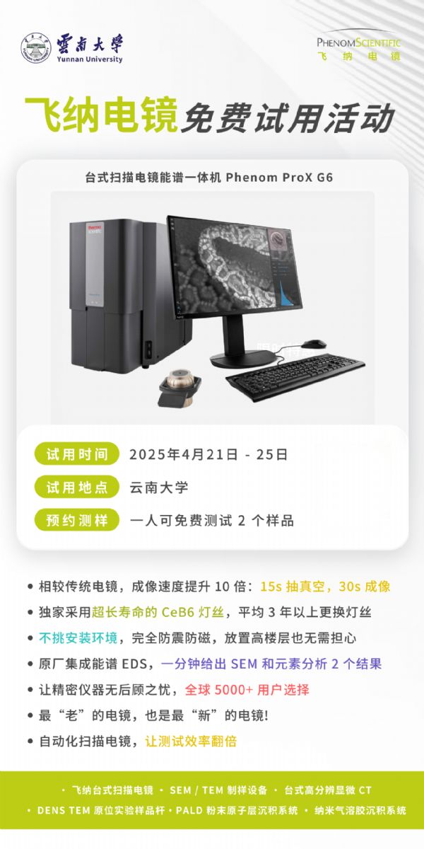 如今,這場(chǎng)備受矚目的活動(dòng)來到了我們美麗的云南大學(xué),將開展為期一周(4月21-25日)的掃描電鏡免費(fèi)測(cè)樣活動(dòng)。