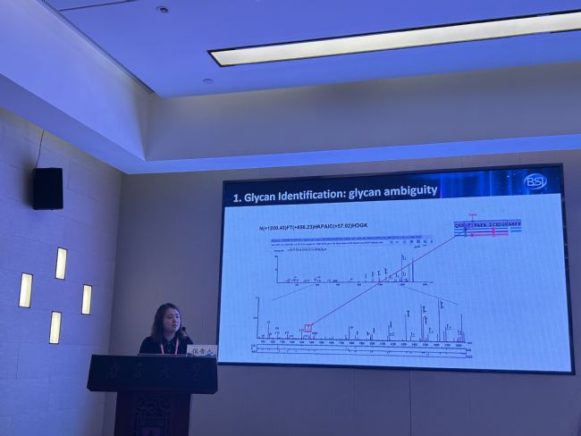 會議上,BSI-China的負責(zé)人李文婷針對糖蛋白組研究的數(shù)據(jù)分析分享了Pitfalls in Glycoproteomics Data Analysis的報告,重點介紹了在糖蛋白質(zhì)組學(xué)和糖組學(xué)質(zhì)譜研究領(lǐng)域面臨的三個主要難題及PEAKS® GlycanFinder對應(yīng)的解決方案。