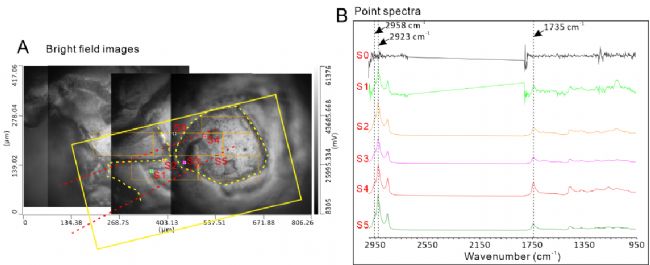 腦組織的明場顯微圖像、O-PTIR光譜及成像分析