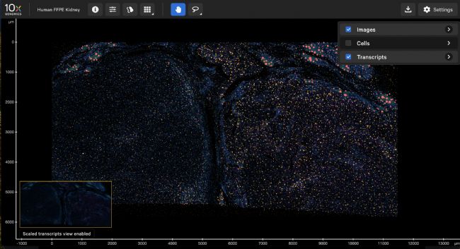 通過這個交互式的在線演示,親身體驗在同一張切片上同時進行蛋白檢測和高通量空間 RNA 分析所能揭示的信息。您可以同時探索在人類 FFPE 腎細胞癌樣本中,結(jié)合使用 Xenium 人類多組織與癌癥預制 panel 和 27 重 Xenium 蛋白檢測子 panel 所獲得的 RNA 和蛋白質(zhì)數(shù)據(jù),深入分析免疫細胞類型、功能狀態(tài)、腫瘤微環(huán)境等等。