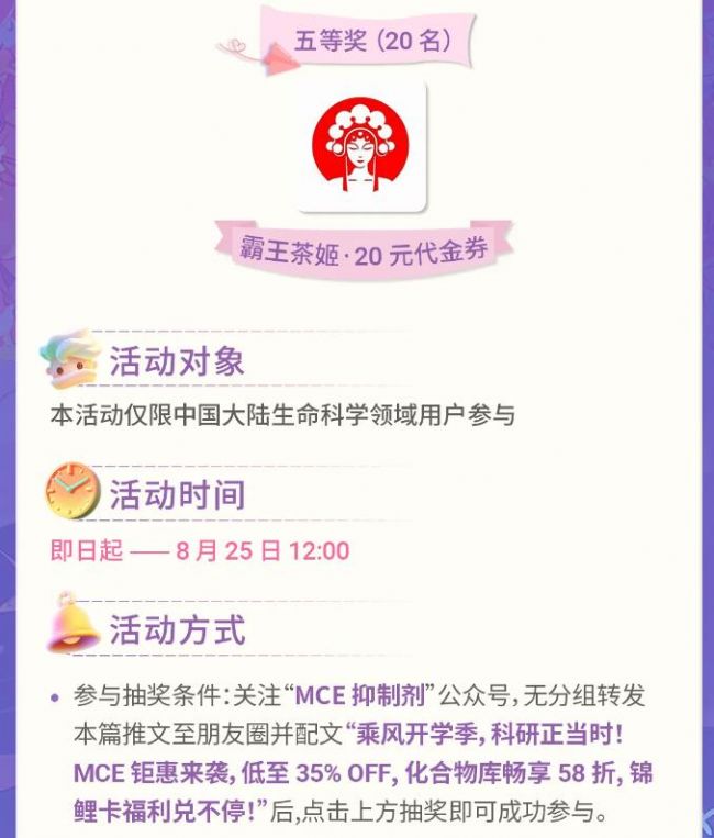 MCE開(kāi)學(xué)鉅惠:低至35%OFF,化合物庫(kù)暢享58折
