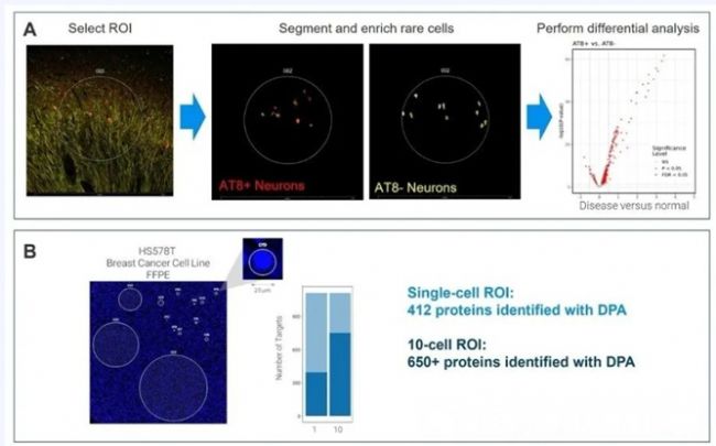 對(duì)組織中稀有的AT8+和AT8-細(xì)胞分別進(jìn)行富集,并開展GeoMx® DPA檢測(cè)分析