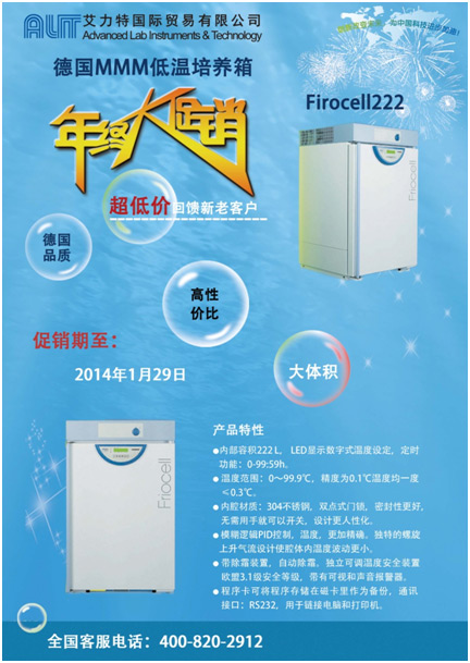 艾力特國際貿(mào)易公司年底掀起價格風(fēng)暴,德國超高品質(zhì)MMM Friocell 222低溫培養(yǎng)箱將以史無前例的低價促銷。趕緊拿起電話,享受年底最大的優(yōu)惠價吧!
