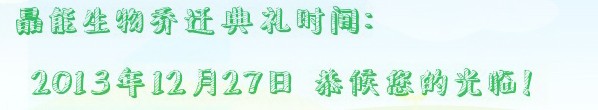 因公司規(guī)模擴大及業(yè)務(wù)發(fā)展需要,晶能生物將于2013年12月27日由徐匯區(qū)肇嘉浜路446弄1號樓1003室搬遷至上海市漕河涇開發(fā)區(qū)漕寶路401號3號樓4A1,具體聯(lián)系方式不變。公司新址位于上海漕河涇開發(fā)區(qū),開發(fā)區(qū)環(huán)境優(yōu)美、科技先進,晶能生物以此為平臺謀求更快的發(fā)展。