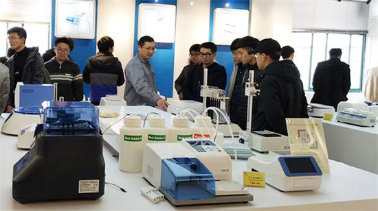 儀式圓滿結(jié)束后,公司副總兼研發(fā)中心總監(jiān)樊總帶領(lǐng)學(xué)校設(shè)計系的師生們一起參觀公司生產(chǎn)車間、檢驗車間、展廳,并對這些積極好學(xué)的學(xué)生們講解公司產(chǎn)品的結(jié)構(gòu)與原理,一臺儀器從結(jié)構(gòu)設(shè)計到組裝、調(diào)試到整機(jī)的整個過程,學(xué)生們也是收獲滿滿。