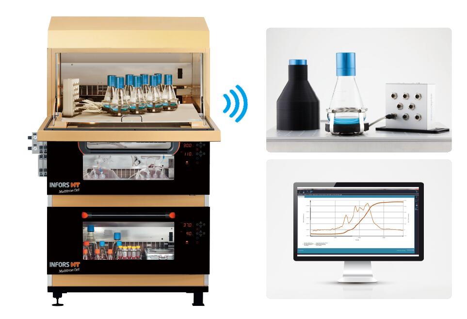 非侵入式,在線實(shí)時(shí)監(jiān)測(cè)搖瓶中生物量系統(tǒng)cgq 系統(tǒng),是一種在線實(shí)時(shí)監(jiān)測(cè)搖瓶中生物量監(jiān)測(cè)設(shè)備,通過(guò)搖瓶底部光學(xué)檢測(cè)器,對(duì)培養(yǎng)物進(jìn)行實(shí)時(shí)跟蹤檢測(cè)。測(cè)量時(shí)不需要將搖瓶從搖床中取出,也無(wú)需停止搖床運(yùn)作cgq 系統(tǒng)通過(guò)特有的光學(xué)測(cè)量技術(shù)自動(dòng)非侵入式的測(cè)量生物量濃度。因此,通過(guò)測(cè)量結(jié)果可以獲取高準(zhǔn)確率的微生物生長(zhǎng)動(dòng)力學(xué)曲線。相對(duì)于傳統(tǒng)的取樣檢測(cè)有著無(wú)可比擬的優(yōu)勢(shì)。