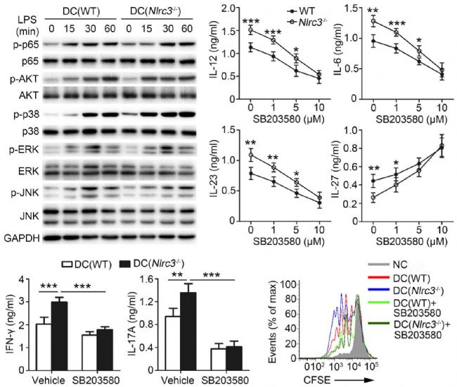 Fig.3 NLRC3 negatively regulated p38signaling pathway in DC.