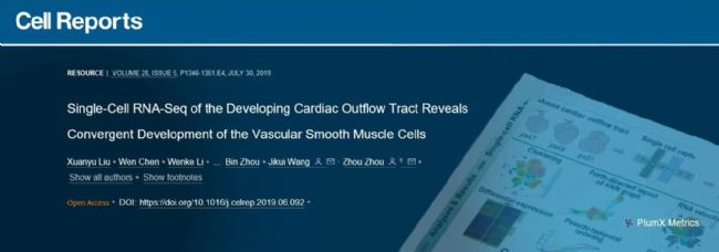 2019年7月30日,國(guó)際學(xué)術(shù)期刊Cell Reports在線發(fā)表了中國(guó)醫(yī)學(xué)科學(xué)院阜外醫(yī)院周洲課題組的最新科研成果“Single-Cell RNA-Seq of the Developing Cardiac Outflow Tract Reveals Convergent Development of the Vascular Smooth Muscle Cells”。