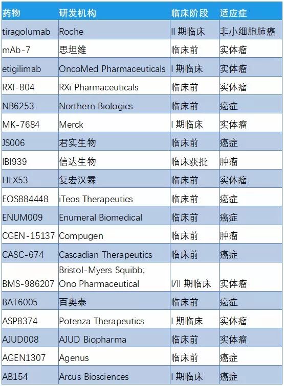 Table 1 國內(nèi)外藥企針對TIGIT靶點的抗體藥物研發(fā)進(jìn)展情況統(tǒng)計。(數(shù)據(jù)來源于醫(yī)藥魔方Info)