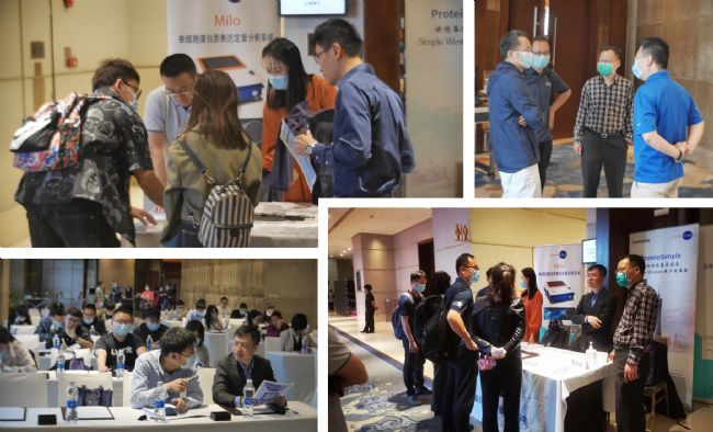 ProteinSimple市場(chǎng)部的蘇倩博士,以新冠肺炎疫苗的種類(lèi)和研究現(xiàn)狀為引,介紹了當(dāng)今蛋白質(zhì)檢測(cè)技術(shù)的未來(lái)和挑戰(zhàn),以及如何利用ProteinSimple的新型蛋白質(zhì)檢測(cè)技術(shù)實(shí)現(xiàn)生物醫(yī)學(xué)研究的整體解決方案。ProteinSimple南區(qū)應(yīng)用技術(shù)支持翁祖森,對(duì)客戶(hù)的操作技術(shù)培訓(xùn)套餐做了詳細(xì)的介紹,并利用其專(zhuān)業(yè)的應(yīng)用技術(shù)支持經(jīng)驗(yàn),為客戶(hù)進(jìn)行技術(shù)答疑。ProteinSimple南區(qū)王曉明工程師,用生動(dòng)易懂的語(yǔ)言,對(duì)Wes/Jess的硬件、工作原理和維護(hù)做了非常詳細(xì)的介紹。廣州皓博儀器儀表有限公司的應(yīng)用技術(shù)支持王海龍,通過(guò)詳細(xì)精彩的案例分享,和扎實(shí)的實(shí)驗(yàn)技術(shù)背景,為客戶(hù)介紹了Simple Western Size方法優(yōu)化以及常見(jiàn)問(wèn)題解決方案。