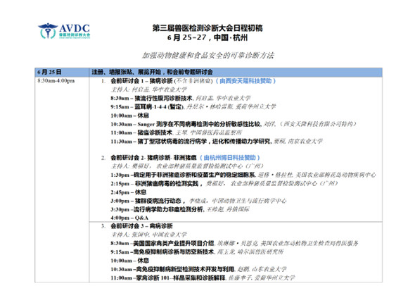 第三屆國際獸醫(yī)檢測(cè)診斷大會(huì)日程正式發(fā)布!