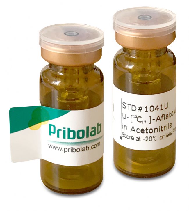 Pribolab 真菌毒素 13C 穩(wěn)定同位素內(nèi)標(biāo),采用獨有的高新技術(shù)實現(xiàn)了真菌毒素結(jié)構(gòu)中的碳原子被穩(wěn)定同位素13C 所取代,實現(xiàn)兩者之前的分子量差異,從而可以應(yīng)用 LC-MS/MS 進(jìn)行區(qū)分,達(dá)到校正基質(zhì)效應(yīng),有效消除不同真菌毒素的相互影響,提高檢驗的準(zhǔn)確度和精密度。