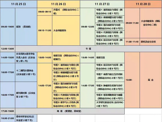 本次會議以“生物化學(xué)的新時(shí)代”為主題,分設(shè)9大會場,點(diǎn)擊下圖可放大查看,或點(diǎn)擊閱讀原文,直達(dá)會議網(wǎng)站查看更多信息。