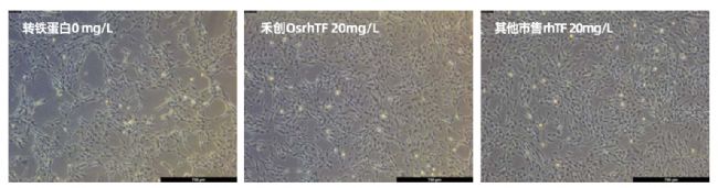 圖2:禾創(chuàng)(右)和其他市售rhTF(左)在MSC細(xì)胞無(wú)血清培養(yǎng)的細(xì)胞形態(tài)對(duì)比