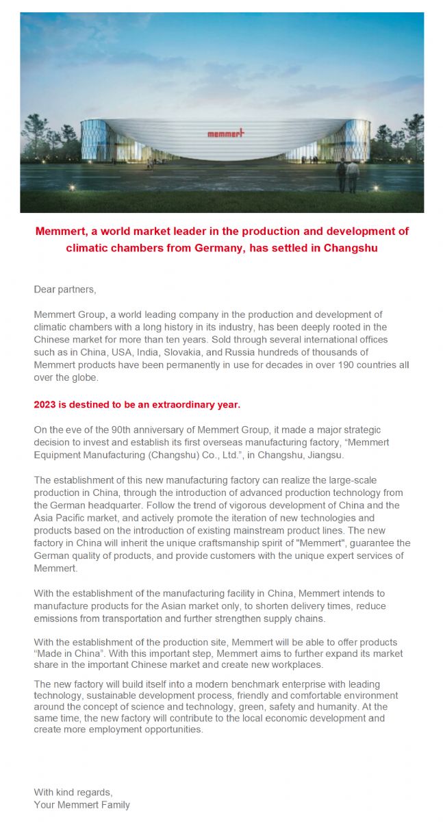 下附Memmert美墨爾特集團(tuán)致中國用戶、合作伙伴的一封公開信——