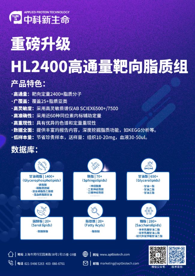 我司繼去年推出HL1250高通量靶向脂質(zhì)組產(chǎn)品以來,頗受市場歡迎,為了滿足更多科研工作者的需求,特別是農(nóng)口方向的客戶,HL1250高通量靶向脂質(zhì)組華麗升級成HL2400高通量靶向脂質(zhì)組,快跟著小編了解一下吧!