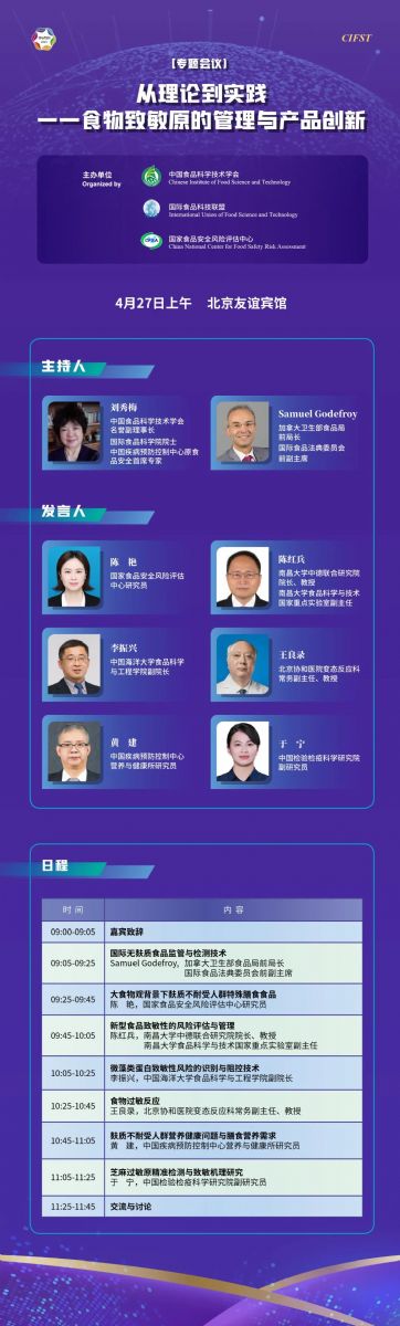 本次大會在落實“大食物觀”的進程中,更加豐富的食物資源也帶來了新的食物過敏原風險,為此,大會以“從理論到實踐——食物致敏原的管理與產(chǎn)品創(chuàng)新”為題設置專題,系統(tǒng)性分析當前食物過敏發(fā)病率與危害,國內外過敏原風險評估與管理新進展,微藻、昆蟲蛋白等zhong點新型食物來源中潛在的致敏物質及其控制和檢測技術等。