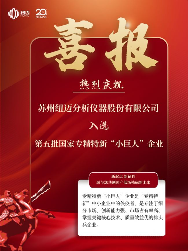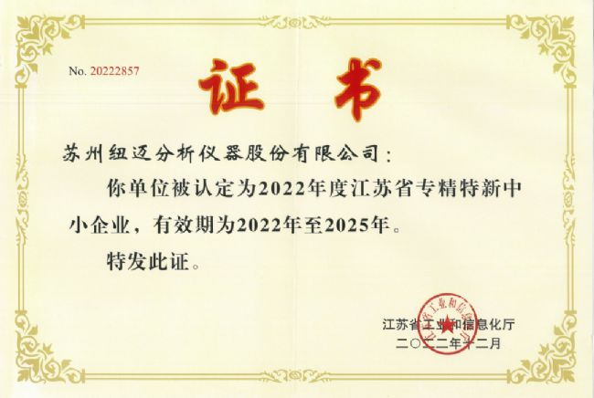 此次能夠入選第五批國家專精特新“小巨人”企業(yè),意味著紐邁分析自主研發(fā)創(chuàng)新及綜合競爭實(shí)力得到了認(rèn)可。值得一提的是,2022年度,紐邁分析也成功入選了江蘇省“專精特新”企業(yè);