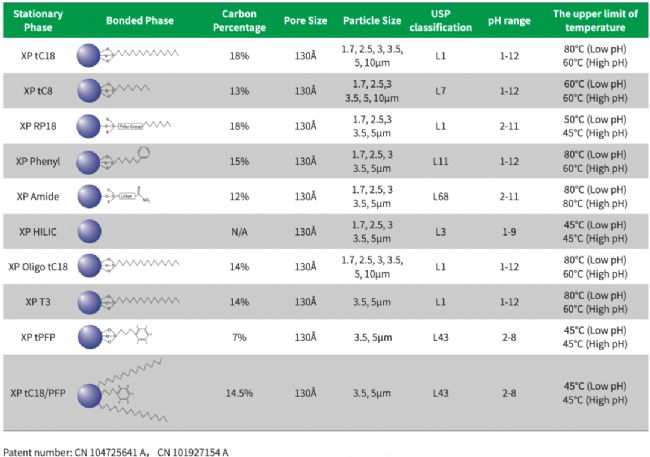 擁有三鍵C18,雙鍵C18,單鍵C18,三鍵C8,雙鍵C8,單鍵C8,NH2,Amide,已基苯基,五氟苯基PFP,二醇基,RPC18,帶電荷PHS,獨(dú)特T3等鍵合修飾技術(shù),為生物醫(yī)藥分離純化及分析檢測(cè)提供功能豐富的系列產(chǎn)品。