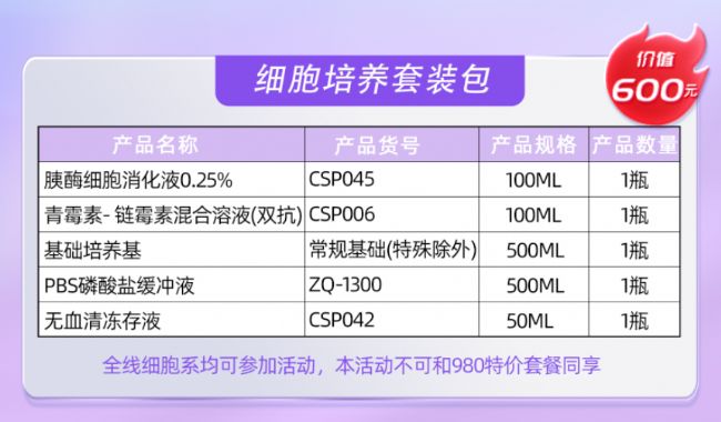 價值600元的細胞培養(yǎng)套裝包