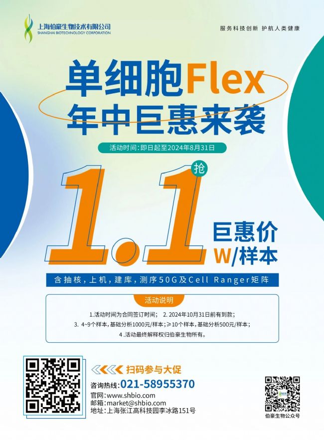 伯豪單細胞Flex年中巨惠,1.1W/樣本活動價即將截止