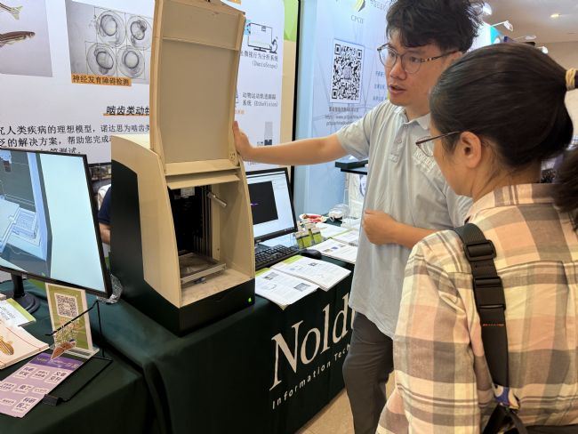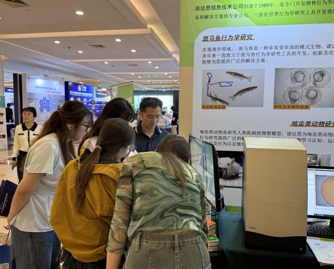 在本次大會(huì)上,諾達(dá)思搭設(shè)了展臺(tái)并展示了其最新研究成果和應(yīng)用案例,吸引眾多嘉賓駐足參觀并深入了解。展出的行為學(xué)研究工具包括:斑馬魚(yú)行為軌跡跟蹤系統(tǒng)(DanioVision),斑馬魚(yú)微視行為分析系統(tǒng)(DanioScope),動(dòng)物運(yùn)動(dòng)軌跡跟蹤系統(tǒng)(EthoVision XT),鼠類(lèi)家居行為活動(dòng)觀測(cè)箱(PhenoTyper),三維運(yùn)動(dòng)軌跡跟蹤系統(tǒng)(Track3D)等。這些產(chǎn)品和設(shè)備不僅可以幫助研究人員更準(zhǔn)確地探究毒物對(duì)行為的影響,也可以為相關(guān)領(lǐng)域的科學(xué)研究提供重要支持,推動(dòng)毒理學(xué)科學(xué)的進(jìn)步和發(fā)展。