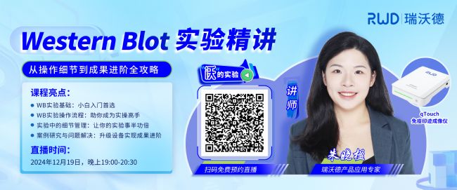 直播全程干貨滿(mǎn)滿(mǎn),我們將針對(duì)WB實(shí)驗(yàn)中的重點(diǎn)和難點(diǎn)進(jìn)行詳細(xì)講解,強(qiáng)調(diào)實(shí)驗(yàn)過(guò)程中容易被忽視的細(xì)節(jié),確保大家能夠掌握實(shí)驗(yàn)的關(guān)鍵步驟和技巧,運(yùn)用瑞沃德qTouch免疫印跡成像儀開(kāi)啟“通關(guān)打怪”模式!