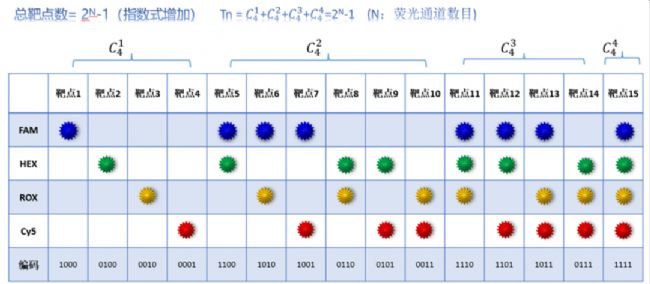 圖1 基于熒光編解碼的超多重?cái)?shù)字PCR方案