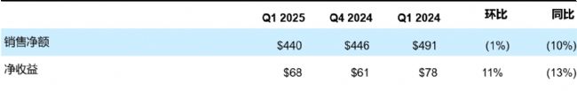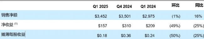 (1) 第一季度GAAP業(yè)績(jī):銷售額34.5億美元,每股收益0.18美元,運(yùn)營利潤(rùn)率12.9%。