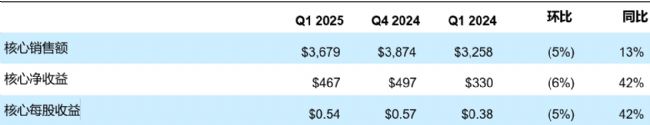 第一季度核心業(yè)績(jī):銷售額37億美元,每股收益0.54美元,運(yùn)營利潤(rùn)率18%。