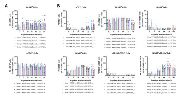 Fig6. Humanized immune reconstitution levels in huHSC-hIL3-hCSF2-Tg(M-NSG) mice.