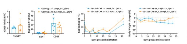 Fig2. 流式分析Hu-HSC模型外周血淋巴細胞亞群。