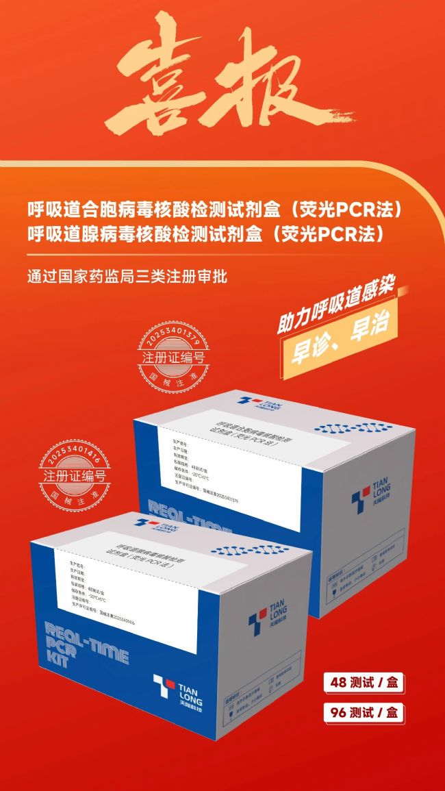 近日,天隆科技自主研發(fā)的呼吸道合胞病毒&腺病毒核酸檢測(cè)試劑通過國(guó)家藥監(jiān)局三類醫(yī)療器械注冊(cè)審批,天隆智造有證家族再添兩位新成員——專精于合胞病毒及腺病毒追蹤的“偵探”,正式加入天隆科技守護(hù)呼吸道健康的精銳隊(duì)伍!