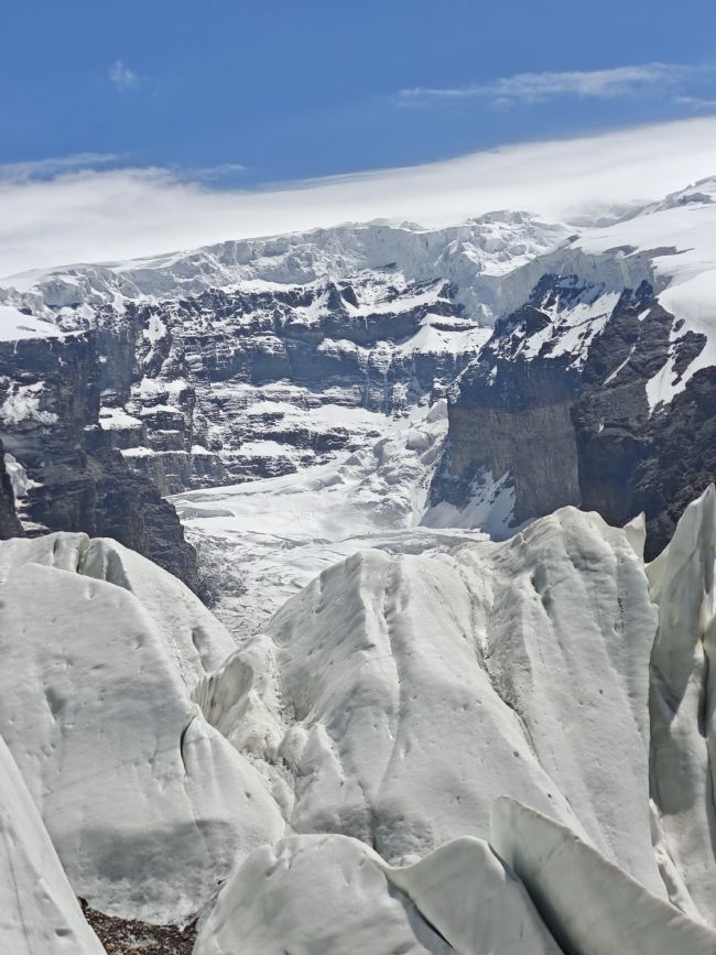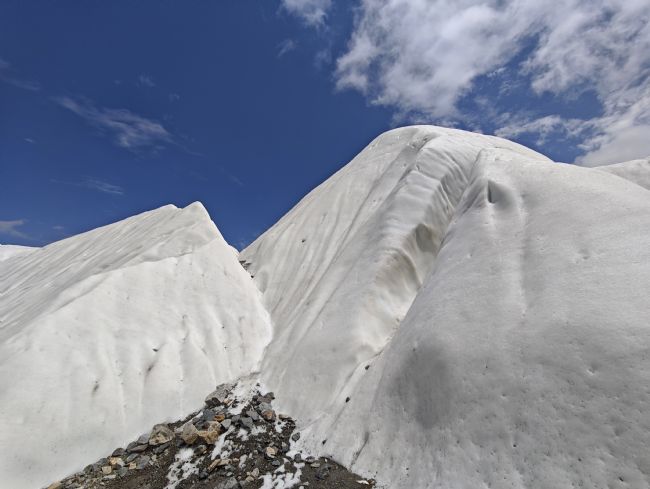 此時(shí)天氣晴朗,雖不見(jiàn)“青海長(zhǎng)云暗雪山”之景,但這藍(lán)天白雪,也無(wú)疑是得萬(wàn)里迢迢赴北疆才能見(jiàn)識(shí)的“冰川雪域”和“雪山玉顏”。