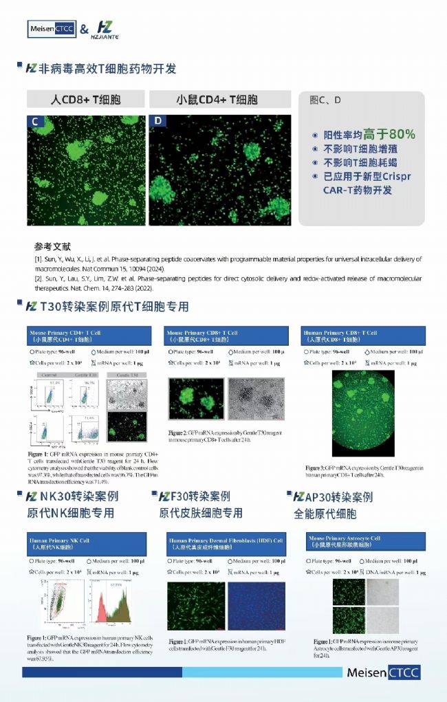 可高效轉(zhuǎn)染各類原代細(xì)胞,像原代T細(xì)胞、干細(xì)胞等,助力基因遞送高效達(dá)成。